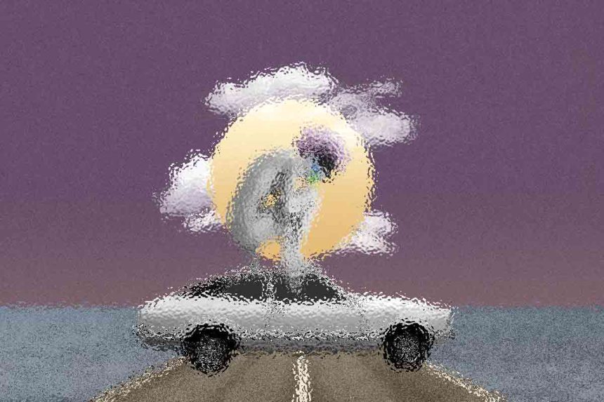 Abstract art, collage with female portrait and mountains, generative ai